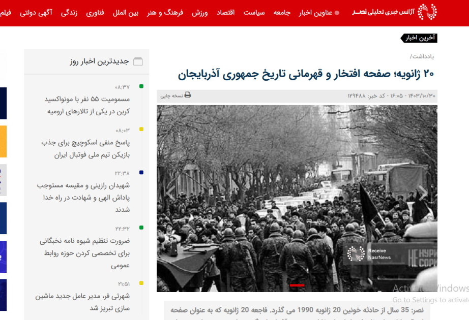 Təbriz qəzeti 20 Yanvar faciəsi barədə məqalə dərc edib