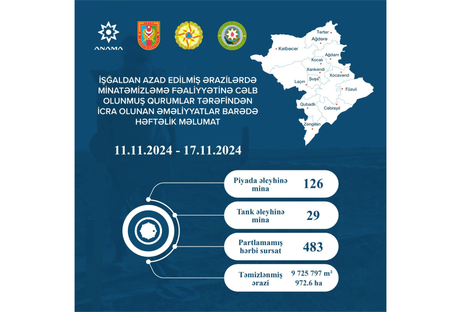 ANAMA: Ötən həftə 483 partlamamış hərbi sursat zərərsizləşdirilib