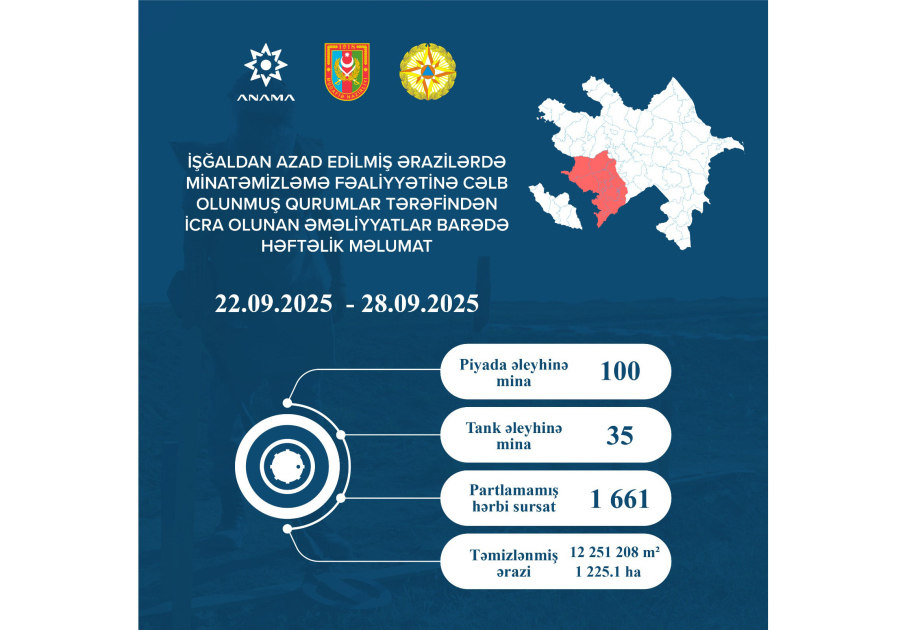 Ötən həftə 135 mina və 1661 partlamamış hərbi sursat zərərsizləşdirilib