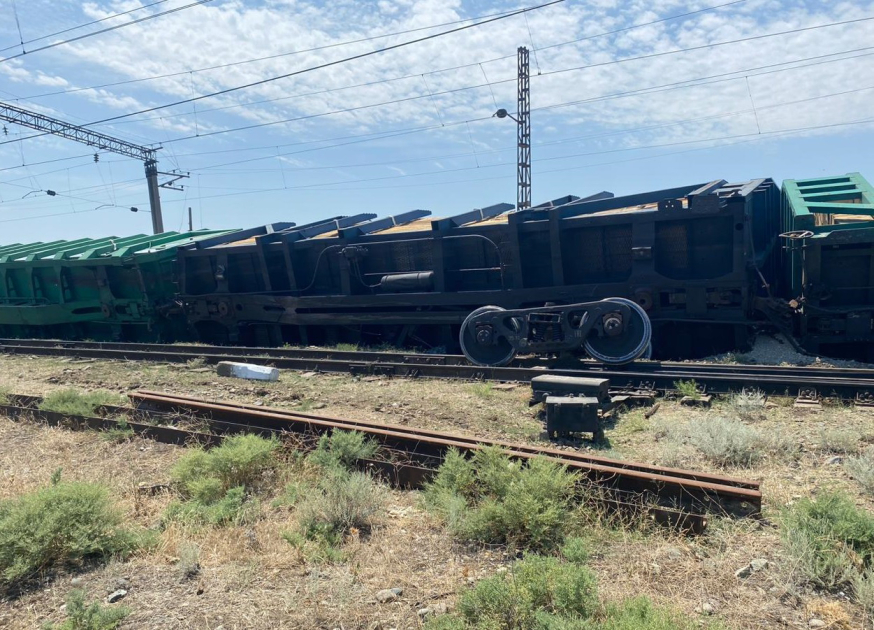 Siyəzəndə yük qatarının vaqonları relsdən çıxaraq aşıb