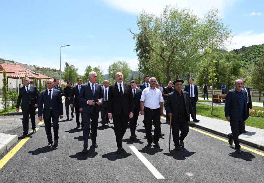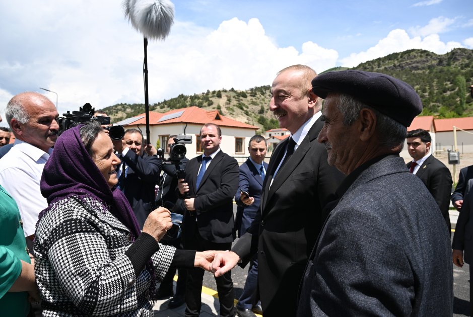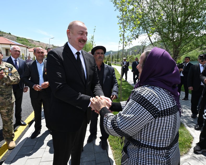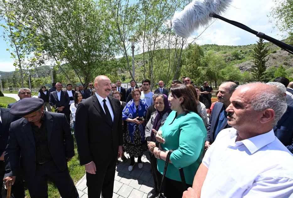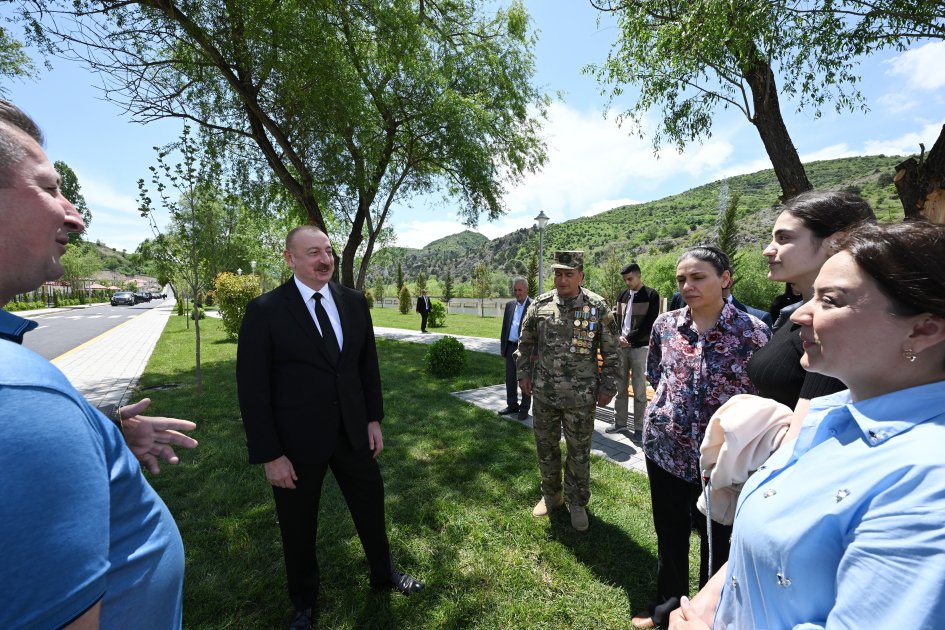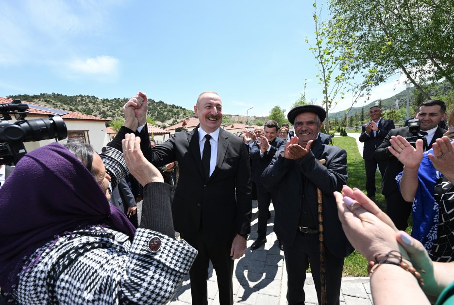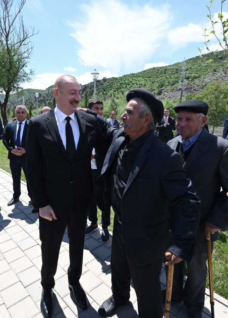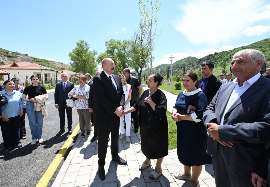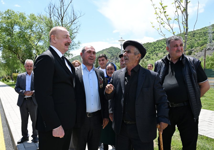 Sonra Prezident İlham Əliyev kəndə köçmüş sakinlərlə görüşdü.