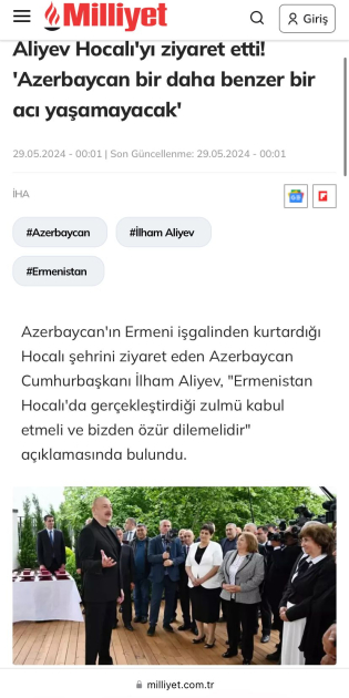 Azərbaycan Prezidentinin Xocalıya səfəri Türkiyə mətbuatında geniş işıqlandırılıb
