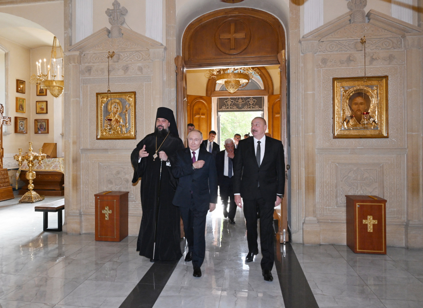 Azərbaycan Respublikasının Prezidenti İlham Əliyev və Rusiya Federasiyasının Prezidenti Vladimir Putin avqustun 19-da Bakıda Müqəddəs Mürdaşıyan Zənənlər Kafedralında olublar.