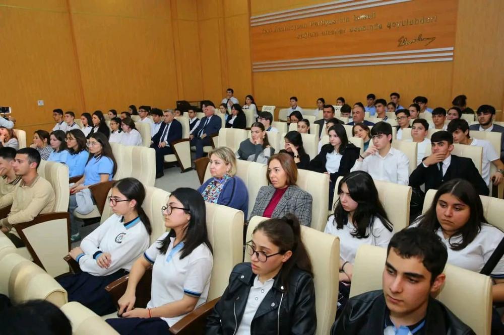 YAP Binəqədi Rayon Təşkilatının sədri V.İsmayılov qonaqları salamlayıb, ümummilli lider Heydər Əliyevin zəngin siyasi irsinin, şərəfli həyat və fəaliyyətinin gənc nəsil tərəfindən öyrənilməsinin əhəmiyyətindən bəhs edib. BŞTİ-nin müdir müavini H.Əsgərov “Heydər Əliyev irsinin öyrənilməsi” mövzusunda dərslərin şagirdlərin milli-mənəvi dəyərlərə malik, sağlam əqidəli, vətənpərvər, müasir dünyagörüşlü şəxsiyyət kimi formalaşmasına, yetkin vətəndaş kimi müstəqil həyata hazırlanması işinə xidmət etdiyini diqqətə çatdırıb.