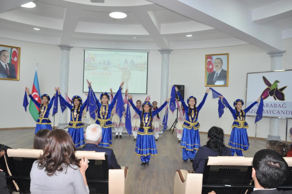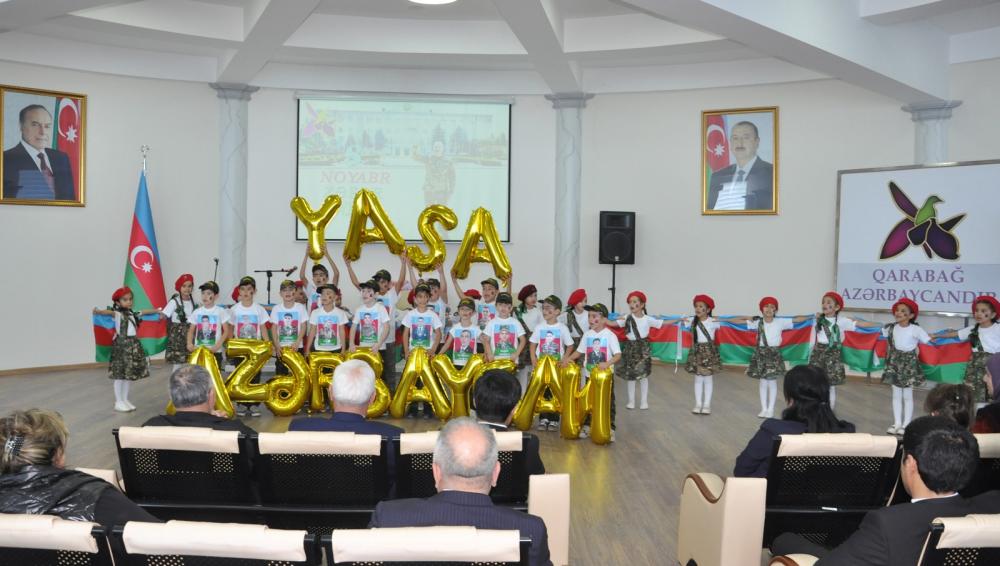 Daha sonra rayon məktəbliləri tərəfindən hazırlanan “Qarabağ Sən Azadsan!” flaşmobuna baxış keçirilmişdir. Yüksək əhval-ruhiyyədə keçirilən flaşmobda vətənpərvərlik ruhunda şüarlar səsləndirilmişdir. Tədbirlər Gənclər Mərkəzinin birinci mərtəbəsində 4 saylı Uşaq-Gənclər İnkişaf Mərkəzi tərəfindən təşkil edilən “Zəfər Günü” mövzusuna həsr olunmuş 20 ədəd rəsm əsərindən ibarət sərgi ilə davam etmişdir. Sərgi maraqla qarşılanmışdır.
