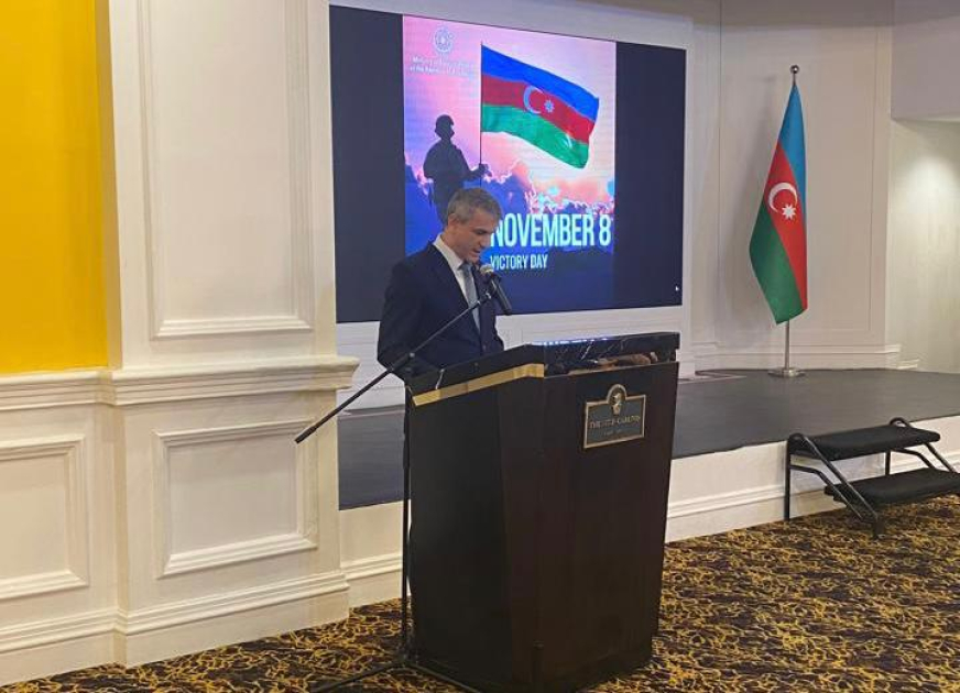 Əvvəlcə hər iki ölkənin Dövlət himnləri səsləndirilib, Zəfər Günü ilə bağlı videoçarx nümayiş etdirilib. Səfir İrfan Davudov Prezident İlham Əliyevin siyasi və hərbi rəhbərliyi altında xalqımızı şanlı Zəfərə aparan yolun hərbi, iqtisadi-sosial, siyasi və strateji tarixindən, Azərbaycanın öz haqlı mübarizəsində qarşılaşdığı ikili standartlar və digər bütün çətinliklərə baxmayaraq, beynəlxalq hüququn tələblərini təkbaşına icra edərək Zəfərə nail olmasından bəhs edib.