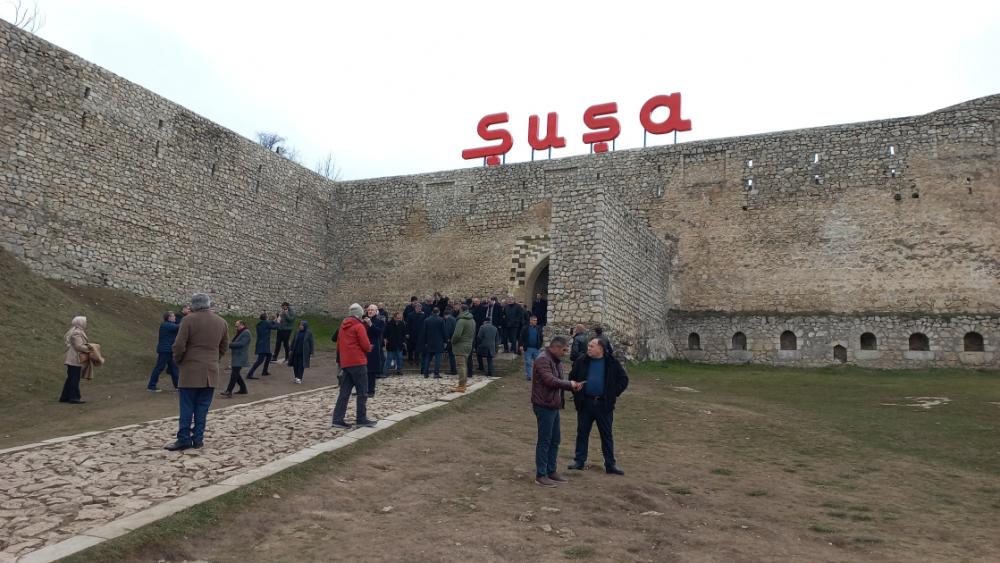 AZƏRTAC-ın bölgə müxbiri xəbər verir ki, nümayəndə heyətinin Azərbaycan mədəniyyətinin paytaxtı ilə tanışlığı ölkəmizin tanınmış şəxsiyyətləri Bülbül, Xurşidbanu Natəvan və Üzeyir Hacıbəylinin güllələnmiş heykəllərinin yerləşdiyi Şuşa şəhər mərkəzi meydanından başlayıb. Şuşa rayonunda Azərbaycan Respublikası Prezidentinin xüsusi nümayəndəsi Aydın Kərimov onlara şəhərin tarixi, işğal dövründəki vəziyyəti və hazırda aparılan quruculuq işləri barədə məlumat verib. Bildirilib ki, 30 ilə yaxın işğal dövründə Şuşa şəhərindəki tarixi binalar, məscidlər, abidələr erməni vandalizminə məruz qalıb. Şuşa işğaldan azad edildikdən sonra Azərbaycan dövləti tərəfindən burada genişmiqyaslı bərpa-quruculuq işlərinə start verilib.