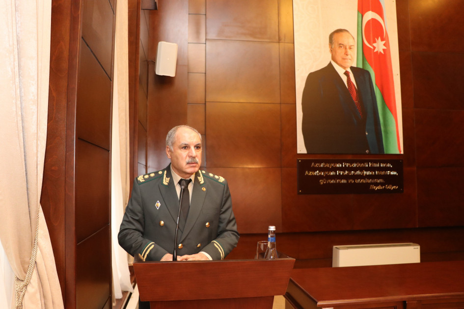 Mərasimdə çıxış edən Baş prokurorun müavini - Hərbi prokuror, ədliyyə general-leytenantı Xanlar Vəliyev Heydər Əliyevin Azərbaycan tarixindəki və beynəlxalq arenadakı rolundan, o cümlədən demokratik, hüquqi dövlət quruculuğunda, ölkəmizin qüdrətlənməsində, xalqın rifahının yüksəldilməsində müstəsna xidmətlərindən və dünya siyasətinə verdiyi töhfələrdən ətraflı danışıb.
