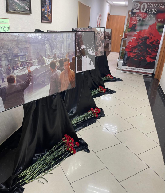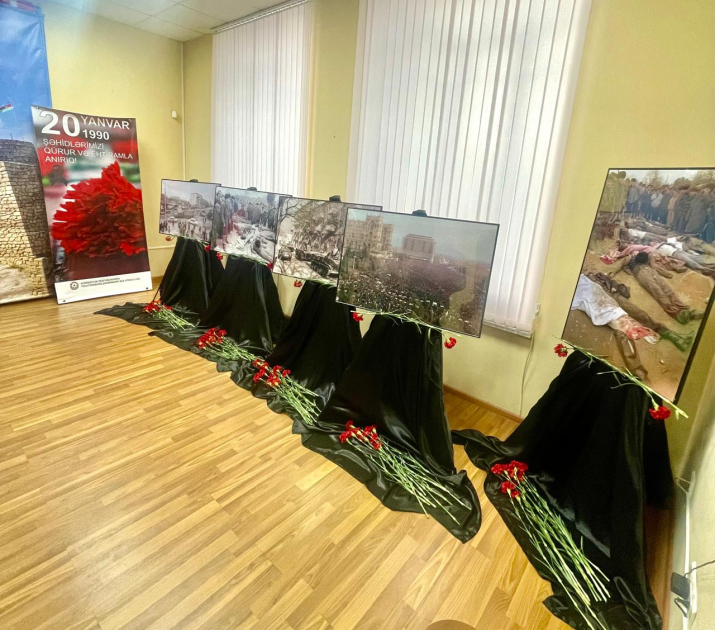 Tədbir iştirakçıları fotosərgi ilə tanış olub, xatirə stendinin önünə gül dəstələri qoyublar. Şəhidlərimizin əziz xatirəsi birdəqiqəlik sükutla yad edilib. Sonra 20 Yanvar hadisələrinə dair film nümayiş olunub.