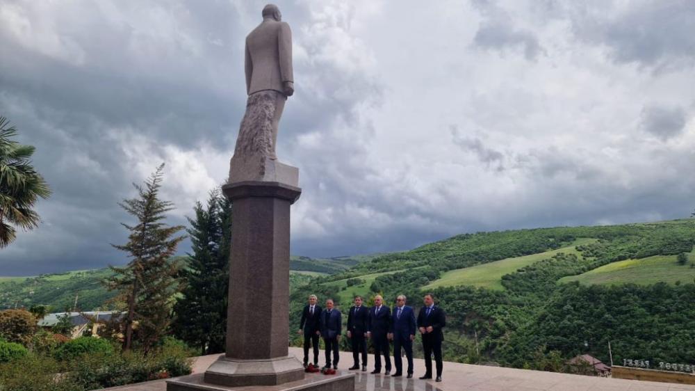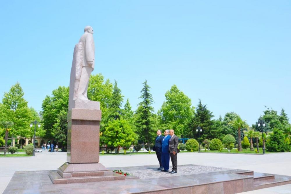 Tədbir iştirakçıları əvvəlcə Ulu Öndər Heydər Əliyevin abidəsini ziyarət edərək önünə gül dəstələri qoyublar.