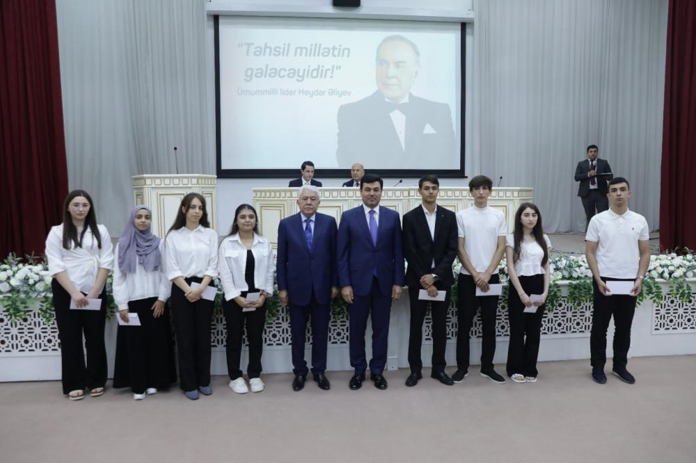 Ölkə rəhbərliyinin təhsil siyasətinin dəstəklənməsi, təhsilin inkişafının stimullaşdırılması, təlim və tədris prosessində nailiyyətləri olanların həvəsləndirilməsi məqsədi ilə Ağalar Vəliyev tərəfindən mərasimdə 57 saylı Xaçmaz şəhər Seçki Dairəsi üzrə cari ildə ali məktəblərə qəbul olunarkən 400-500 aralığında bal toplayan 72 tələbəyə, 500-600 aralığında bal toplayan 27 tələbəyə, 600-650 aralığında bal toplayan 7 tələbəyə, 650-700 aralığında bal toplayan 8 tələbəyə, topladığı baldan asıllı olmayaraq tələbə adı qazanan 2 şəhid övladına, ümumilikdə isə 116 nəfərə müxtəlif məbləğlərdə pul mükafatı təqdim edilib.