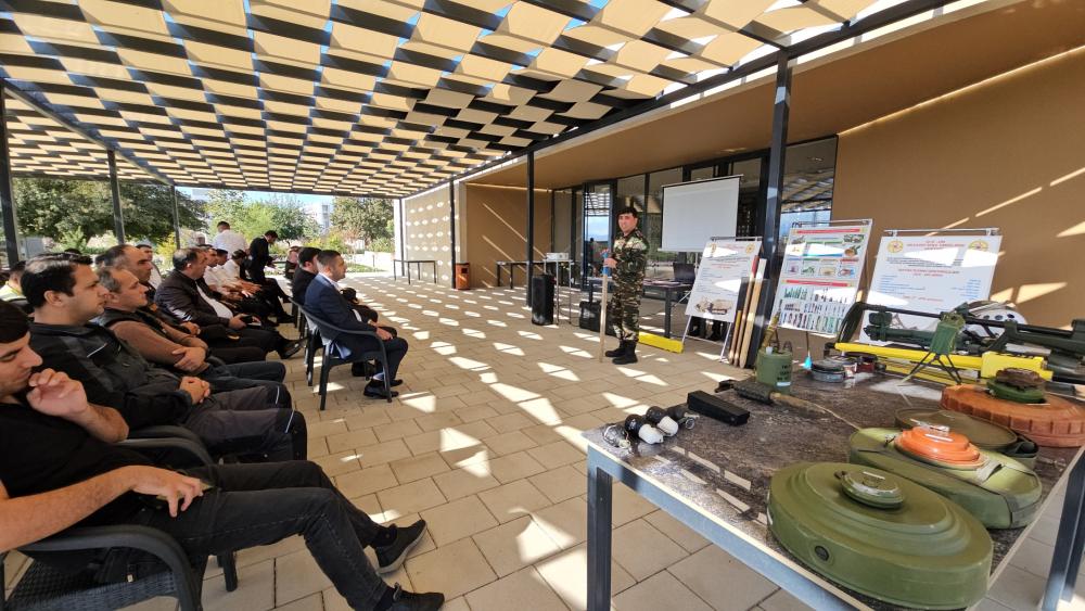 Əvvəlcə, təlimin nəzəri hissəsində FHN-in əməkdaşları tərəfindən tədbir iştirakçılarına fövqəladə hallar, o cümlədən yanğınlar zamanı zəruri davranış qaydaları, mina təhlükəsindən qorunmanın yolları, təxliyə tədbirləri barədə ətraflı məlumat verilib, bu barədə videoçarxlar nümayiş etdirilib.