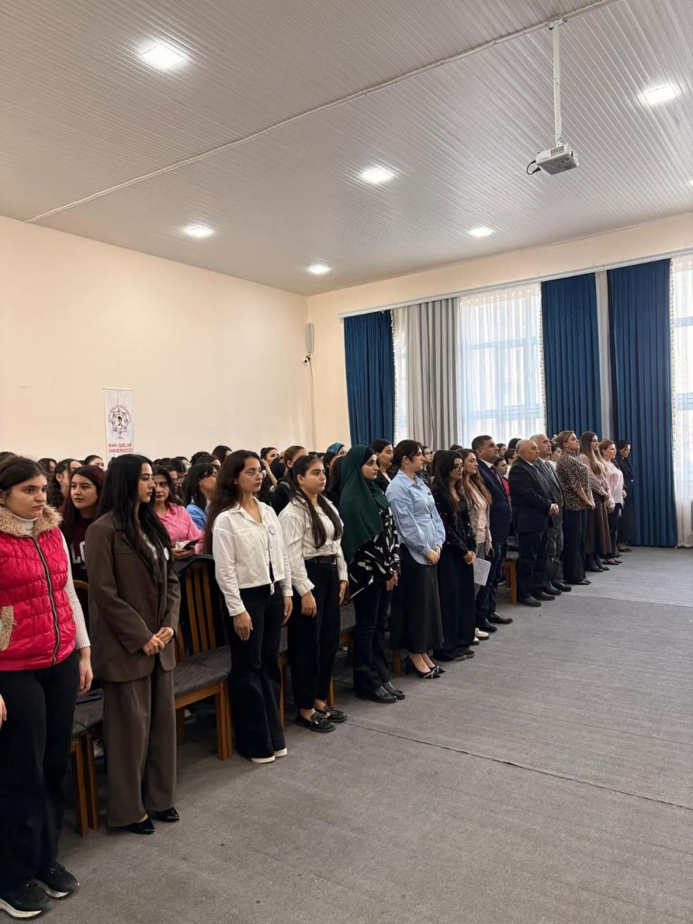 Daha sonra tərbiyə işləri üzrə prorektor Aygün Cəfərova çıxış edərək, müəllifi olduğu “Qarabağ dastanı” adlı şeirini səsləndirdi. Tədbir çərçivəsində Tələbə Elmi Cəmiyyətinin konfrans qaliblərinə fəxri fərmanlar təqdim olundu.