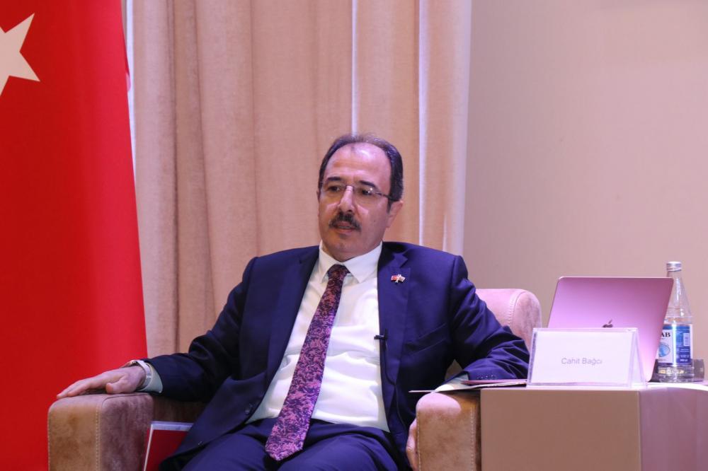 Daha sonra Türkiyənin ölkəmizdəki səfiri Cahit Bağçı çıxış edib. Səfir qeyd edib ki, qardaş ölkələr arasında münasibətlərin dərin tarixi olduğu üçün, bunu 30 ilə sığışdırmaq olmaz. Diplomat bildirib ki, Türkiyə və Azərbaycanın sevinci də, kədəri də bir olub. İstər Çanaqqala döyüşündə, istərsə də 1918-ci ildə Bakının işğaldan azad olunmasında biz bu birliyin, qardaşlığın şahidi olmuşuq. 44 günlük Vətən müharibəsi zamanı da Türkiyə qardaş Azərbaycanın yanında idi. Cahit Bağçı qeyd edib ki, Şuşa Bəyannaməsinin imzalanması qardaş ölkə münasibətlərinin zirvəsi oldu. Tarixi Qars müqaviləsindən 100 il sonra imzalanan Şuşa Bəyannaməsi Türkiyə-Azərbaycan qardaşlığını, birliyini və həmrəyliyini təsdiq edən mühüm sənəddir. Səfir vurğulayıb ki, qardaş ölkələrin tarixi birliyi gələcək nəsillərə miras olaraq qalacaq. Tədbirdən sonra Cahit Bağçı tələbələrin və media nümayəndələrinin suallarını cavablandırıb.