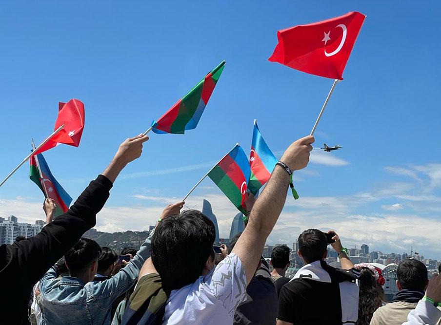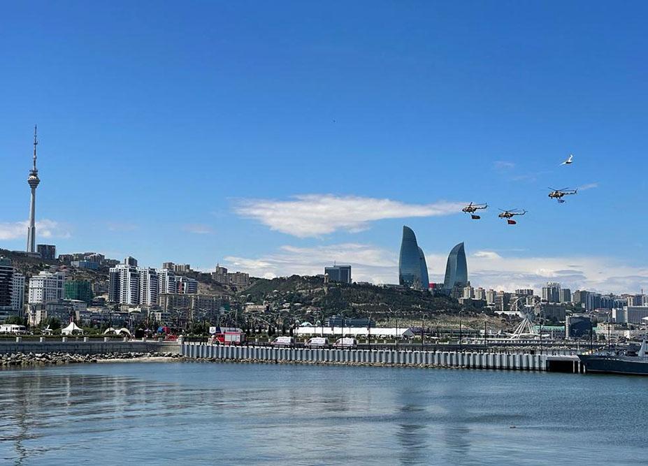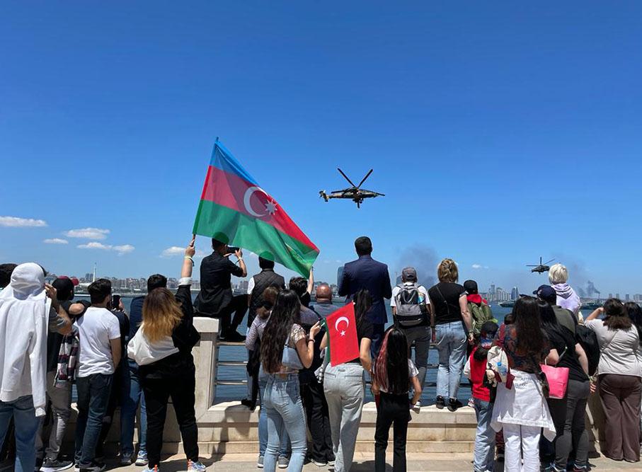 Hərbi pilotlarımızın MiQ-29 təyyarəsi ilə çətin pilotaj manevrlərlə nümunəvi uçuşu izləyənlər tərəfindən böyük maraqla qarşılanıb.