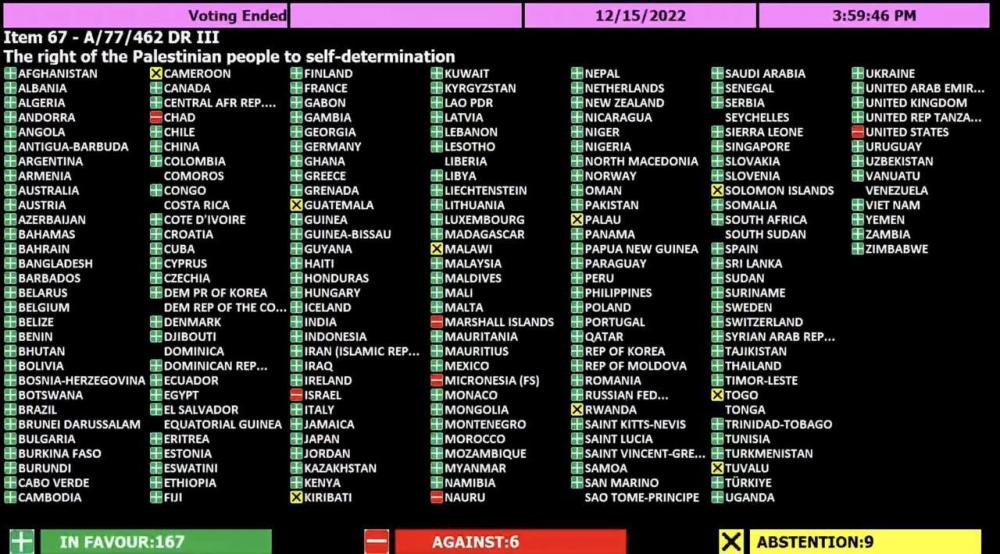 Sentyabrın 12-də Birləşmiş Millətlər Təşkilatının Baş Assambleyasında 142 səs lehinə, 10 səs əleyhinə olmaqla, 1967-ci il sərhədlərində Fələstin dövlətinin yaradılmasını dəstəkləyən qətnamə qəbul edilib. Qətnamə “Nyu-York Bəyannaməsi” adlanır. Qeyd edək ki, sözügedən qətnamənin təşəbbüskarları Fransa və Səudiyyə Ərəbistanı olub. Sənəd BMT tarixində Fələstin məsələsində ən geniş dəstək toplayan sənədlərdən biri kimi qiymətləndirilir. Qətnamənin əleyhinə səsverənlər arasında İsrail, ABŞ, Argentina və Macarıstan da yer alıb. 12 ölkə, o cümlədən Kamerun, Danimarka, Moldova və Şimali Makedoniya səsvermədə bitərəf qalıb. Bu mühüm səsvermədə Azərbaycan və Ermənistan da Fələstinlə bağlı qərarın “lehinə” səs verib. Gürcüstan isə səsvermədə iştirak etməyib. İsrailin Xarici İşlər Nazirliyi qətnaməni kəskin şəkildə rədd edərək, BMT Baş Assambleyasını “siyasi sirk” adlandırıb. Ekspertlər qeyd edilər ki, qətnamə hüquqi baxımdan məcburi xarakter daşımasa da, siyasi rəmz olaraq həm İsrailə, həm də dünya ictimaiyyətinə güclü mesaj göndərir - onlar hesab edirlər ki, Fələstin məsələsində beynəlxalq konsensus getdikcə daha da möhkəmlənir.