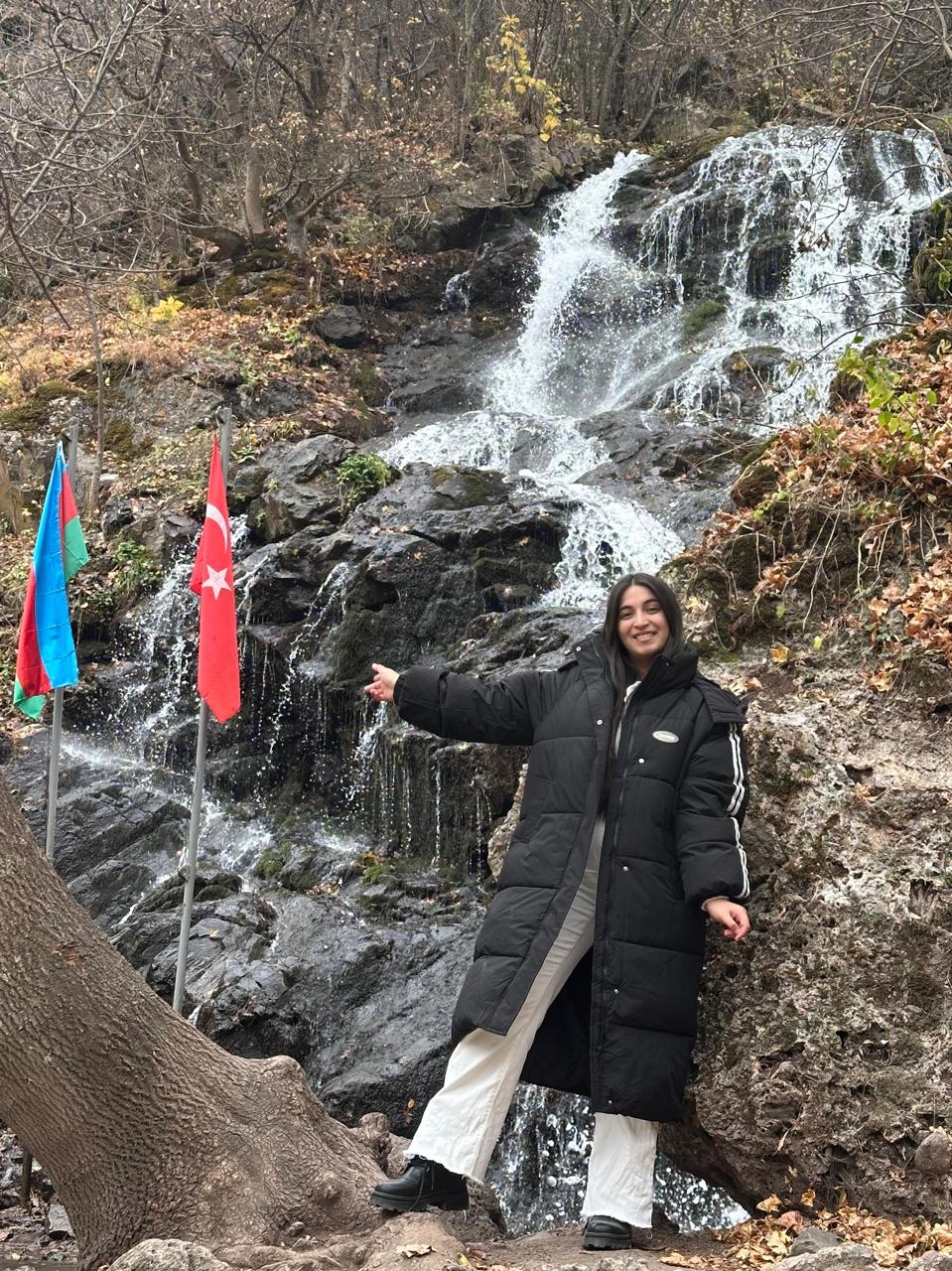 Sıldırımlı qayalarla əhatə olunmuş uzun bir yoldan sonra möhtəşəm bir şəlaləyə çatırıq. Şəlalənin suları dağların qucağından tökülür, ucsuz-bucaqsız təbiətin ritmini daşıyır. Su damcıları günəş işığında inci tək parlayır, hər damla Laçının təmiz nəfəsini, azadlığın və dirçəlişin simvolunu əks etdirir. Şəlalənin yanında dalğalanan Azərbaycan və Türkiyə bayraqları isə qardaşlıq, həmrəylik və regionun gələcəyə ümid dolu baxışı simvolizə edir. Burada dayananda hiss edirsən ki, bu axın yalnız su deyil o, qayıdışın, birliyin və həyatın davamlılığının rəmzidir.