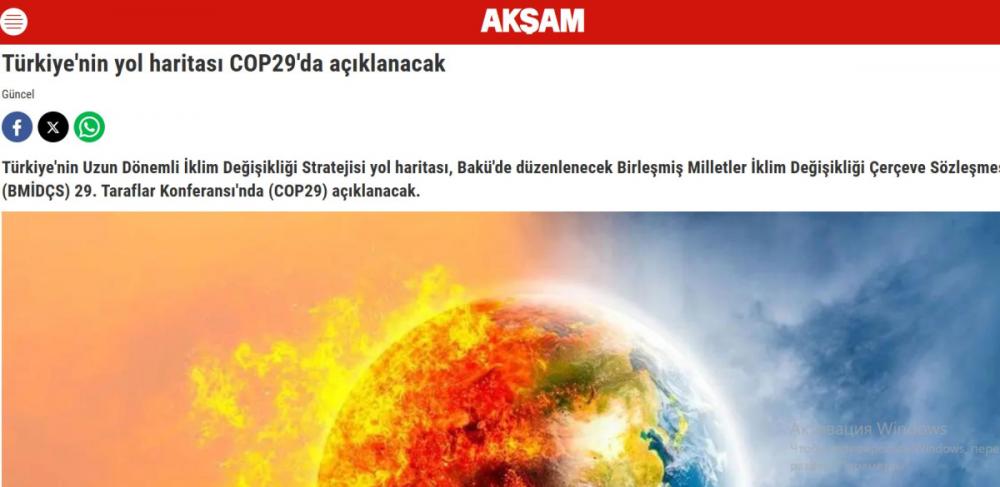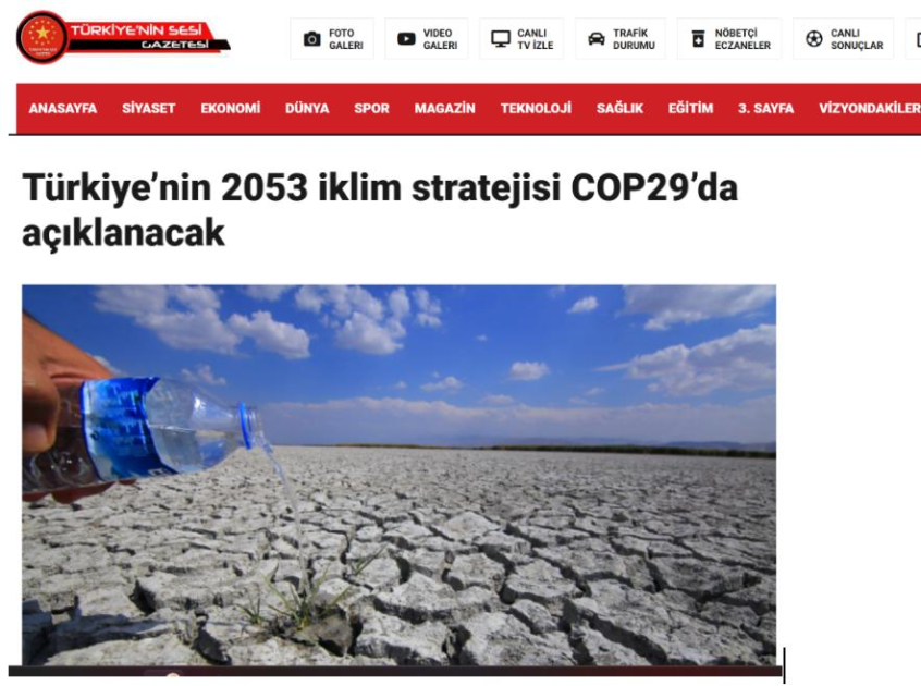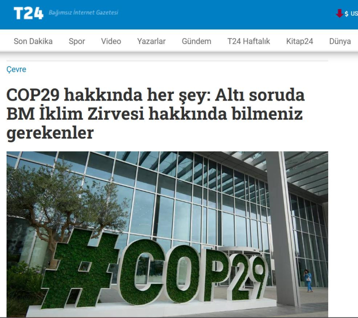 Türkiyə və Şimali Kipr Türk Cümhuriyyətinin (ŞKTC) aparıcı media orqanları BMT-nin İqlim Dəyişmələri üzrə Çərçivə Konvensiyasının Tərəflər Konfransının Azərbaycanda keçiriləcək 29-cu sessiyasının (COP29) mövzusunu geniş şəkildə işıqlandırıb.