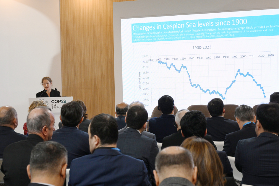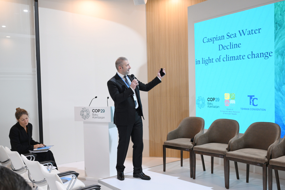 BMT-nin İqlim Dəyişmələri üzrə Çərçivə Konvensiyasının 29-cu sessiyası (COP29) çərçivəsində Azərbaycan milli pavilyonunda “İqlim dəyişikliyi fonunda Xəzər dənizinin səviyyəsinin azalması” mövzusunda Xəzəryanı ölkələrin rəsmilərinin toplantısı keçirilib.