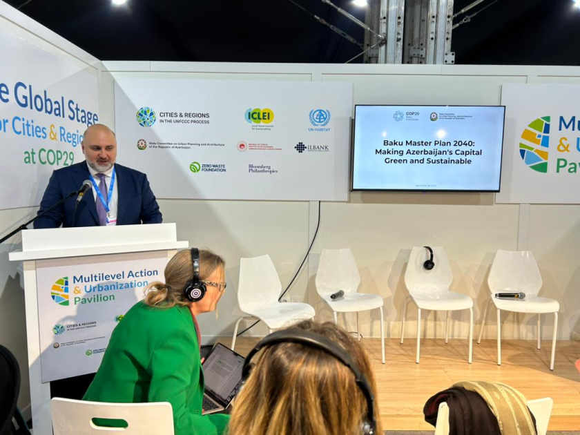 Noyabrın 18-də COP29-da Çoxsəviyyəli Fəaliyyət və Şəhərsalma Pavilyonunda Bakının Baş planının icrasına həsr olunmuş tədbir keçirilib.