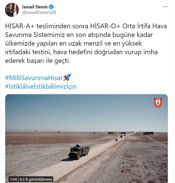 Türkiyənin “Hisar-O” raketdən müdafiə sisteminin sınağı uğurlu olub