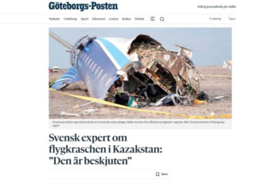 Gündəlik “Göteborgs-Posten” qəzetində isveçli aviasiya eksperti Yan Olssonun müsahibəsi dərc edilib, burada o, “Azərbaycan Hava Yolları” QSC-yə (AZAL) məxsus təyyarənin qəzaya uğraması ilə bağlı fikirlərini bildirir.