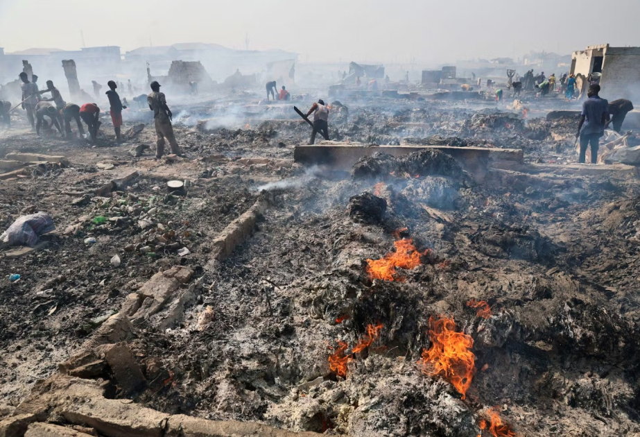 Qananın paytaxtı Akranın əsas geyim bazarı yanğın nəticəsində külə dönüb.