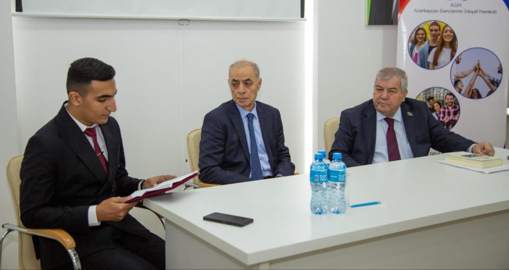 AGİH-in sədri Miri Mirəliyev gənclər adından çıxış edərək bu cür tədbirlərin gənclərin inkişafındakı rolundan bəhs edib. O, Sabir Rüstəmxanlı ilə görüşün gənclərin ən böyük istəklərindən biri olduğunu vurğulayaraq bu istəyi yerinə yetirdiyi üçün Xalq şairinə öz təşəkkürünü bildirib.