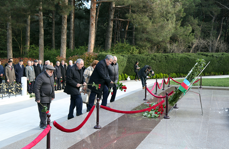 AMEA-nın kollektivi Ümummilli Lider Heydər Əliyevin məzarını ziyarət edib