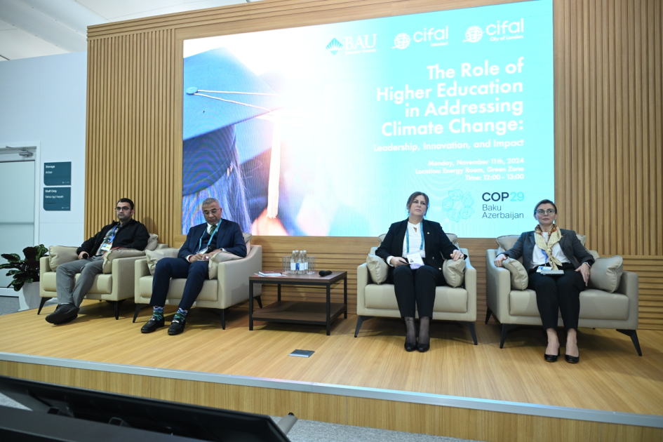 Noyabrın 11-də Birləşmiş Millətlər Təşkilatının (BMT) İqlim Dəyişmələri üzrə Çərçivə Konvensiyasının Tərəflər Konfransının 29-cu sessiyası (COP29) çərçivəsində BMT-nin Təlim və Tədqiqat İnstitutunun təşkilatçılığı ilə “İqlim dəyişikliklərinə qarşı mübarizədə ali təhsilin rolu: liderlik, innovasiya və təsir gücü” mövzusunda panel müzakirə keçirilib.