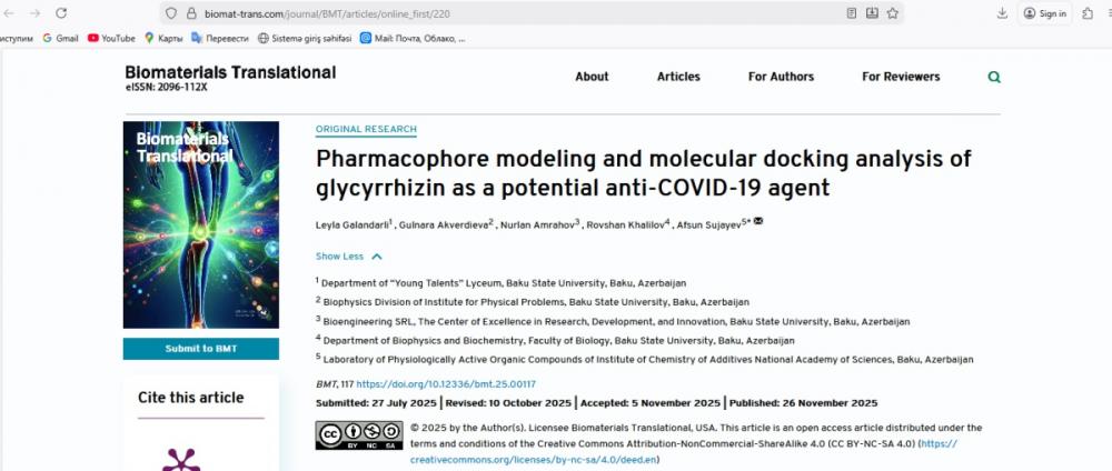 Ənənəvi bitki mənşəli dərmanlar virus infeksiyaları üçün tamamlayıcı müalicə kimi geniş istifadə olunur. Bu amili nəzərə alaraq Bakı Dövlət Universiteti və Aşqarlar Kimyası İnstitutunun alimləri biyan kökündə olan qlisirrizin birləşməsini müfəssəl şəkildə tədqiq ediblər və bu birləşməni COVID-19 üçün potensial terapevtik vasitə olaraq təklif ediblər.