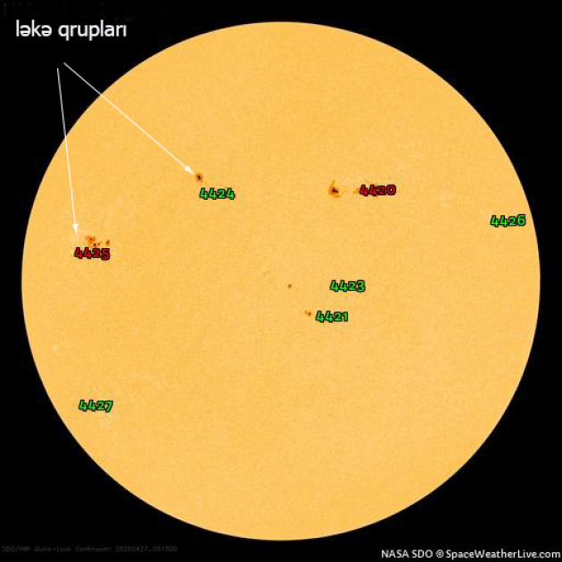 Rəsədxanadan AZƏRTAC-a bildirilib ki, Günəş fəallığı artıb, 4419 ləkə regionunda X2.52 sinifli güclü alışma qeydə alınıb. Bu proseslər nəticəsində radiorabitədə R2–R3 səviyyəli fasilələr, Yerə yönəlmiş Tac Kütlə Atılmaları (TKA), II–IV tip radioemissiya və 10 sm diapazonda radioalışmalar müşahidə olunub. Günəş səthində 7 ləkə qrupunda ümumilikdə 137 ləkə və Tac dəlikləri qeydə alınıb. 2 MeV-dən yüksək enerjili elektron seli orta və yüksək, 10 MeV-dən yüksək proton seli isə fon səviyyəsində olub. Günəş küləyinin sürəti maksimum 603 km/san-ə çatıb. Hazırda bu göstərici 423 km/san, sıxlıq 2.26 p/sm³ təşkil edir.