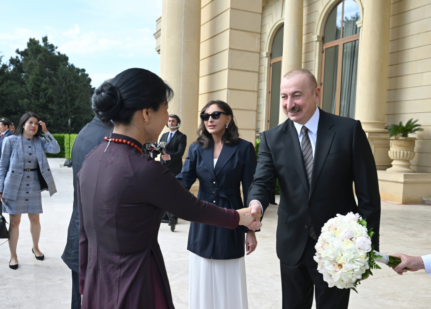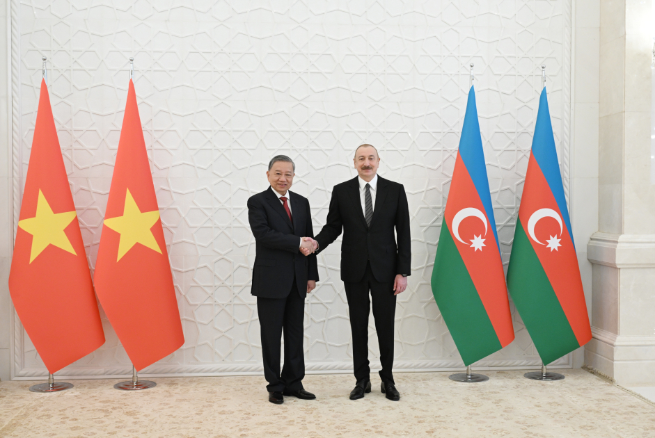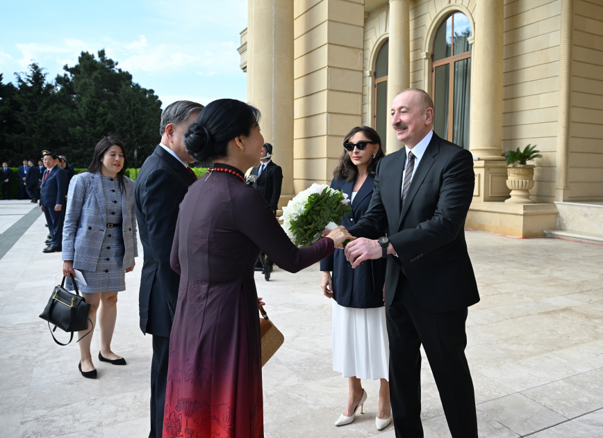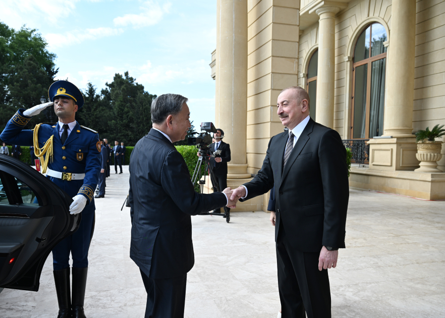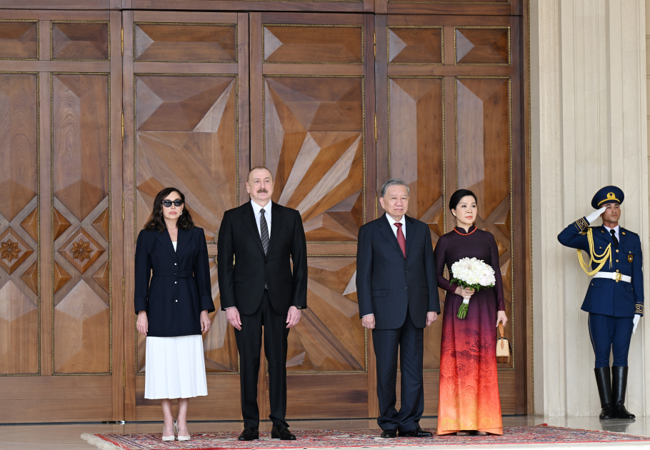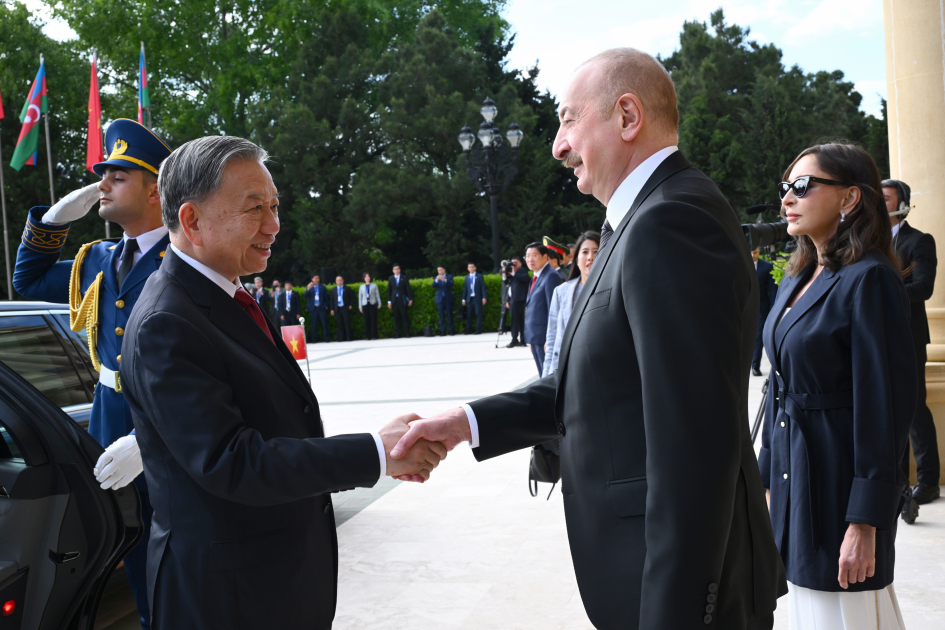 Azərbaycan Prezidenti İlham Əliyev və birinci xanım Mehriban Əliyeva Vyetnam Sosialist Respublikası Kommunist Partiyasının Mərkəzi Komitəsinin Baş katibi To Lamı və xanımı No Fon Lini qarşıladılar.