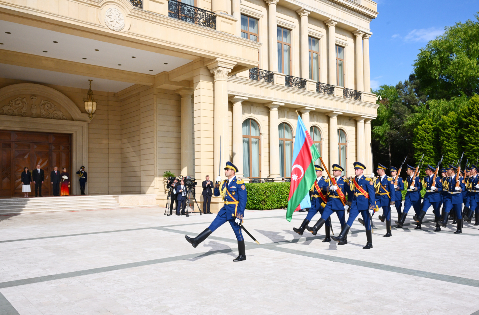 AZƏRTAC xəbər verir ki, hər iki ölkənin Dövlət bayraqlarının dalğalandığı meydanda ali qonağın şərəfinə fəxri qarovul dəstəsi düzülmüşdü.