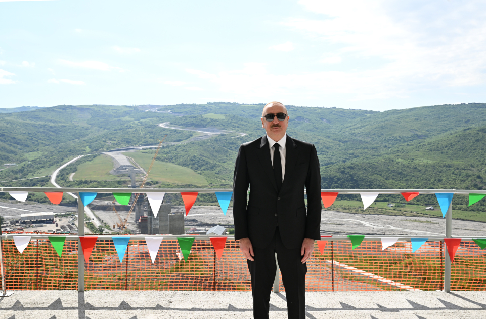 Prezident İlham Əliyev Bakı-Qəbələ avtomobil yolunun Muğanlı-İsmayıllı-Qəbələ hissəsində görülən işlərlə tanış olub