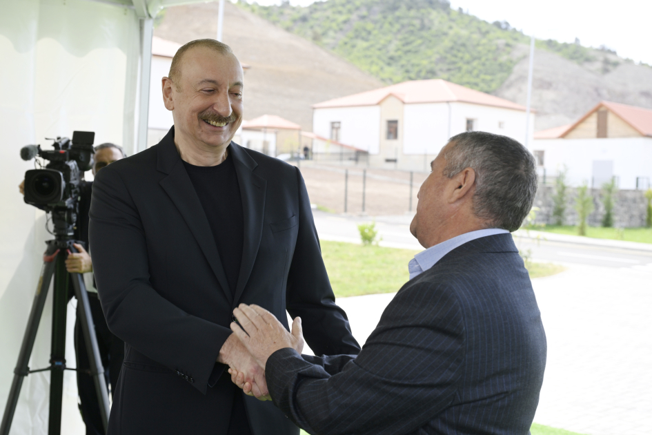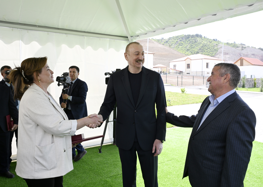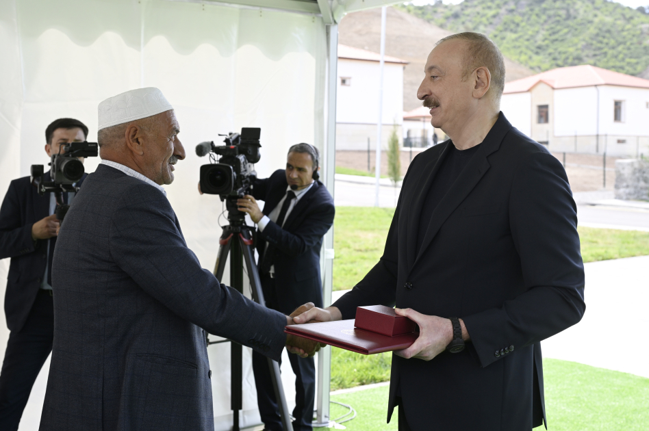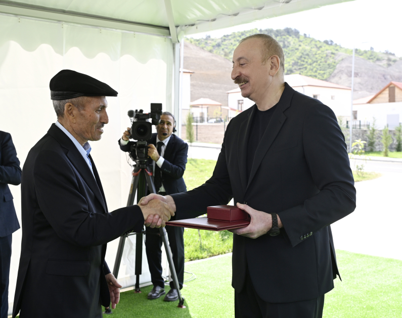 / / Prezident İlham Əliyev Laçının Bəylik kəndinə köçən sakinlərlə görüşüb, onlara evlərin açarlarını təqdim edib