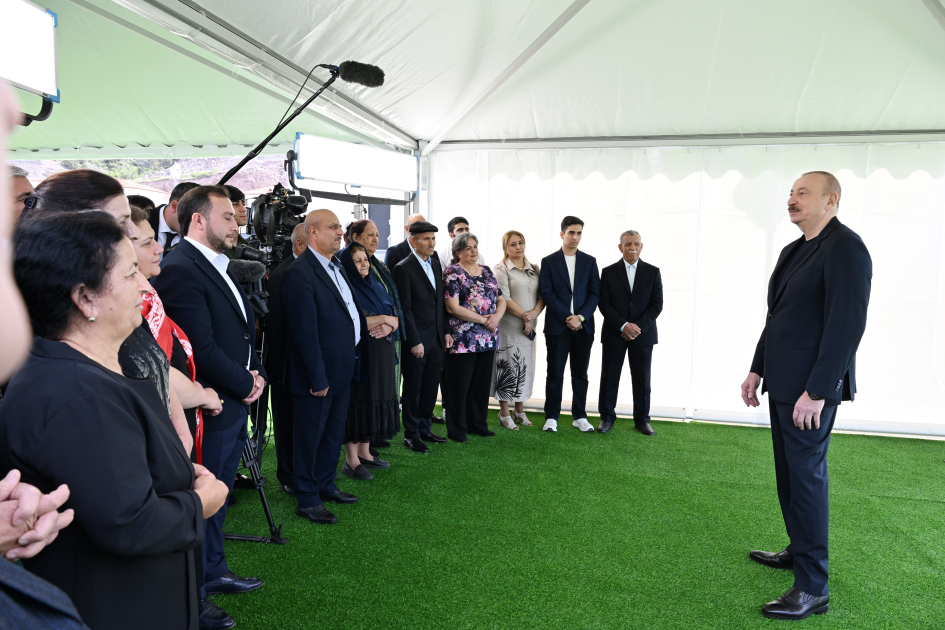 Prezident İlham Əliyev Laçının Bəylik kəndinə köçən sakinlərlə görüşüb, onlara evlərin açarlarını təqdim edib