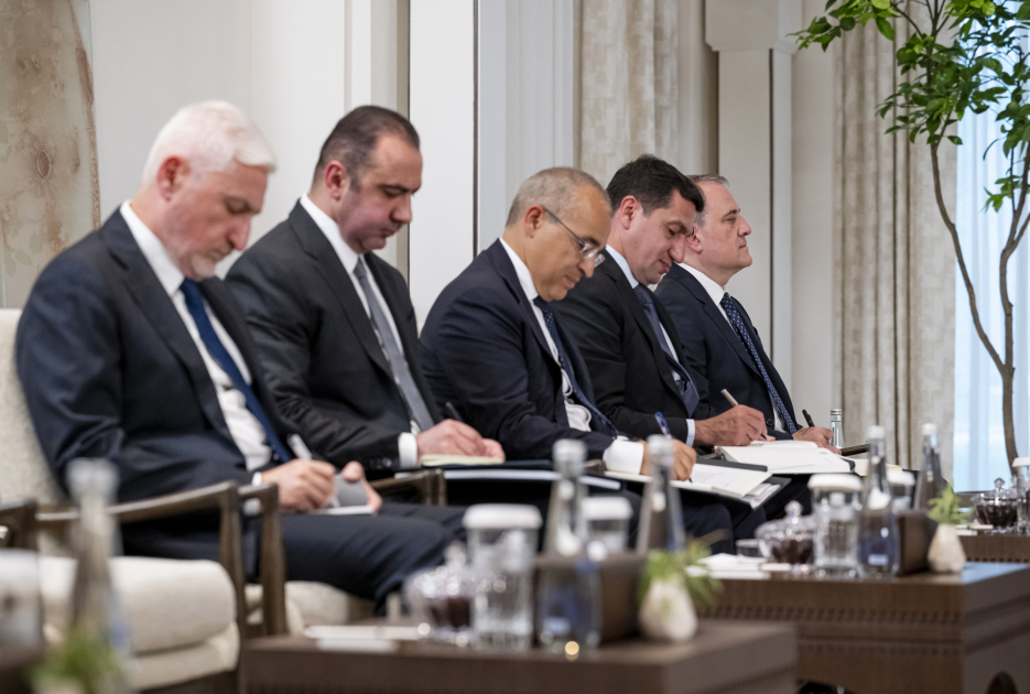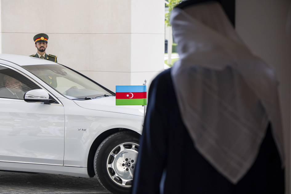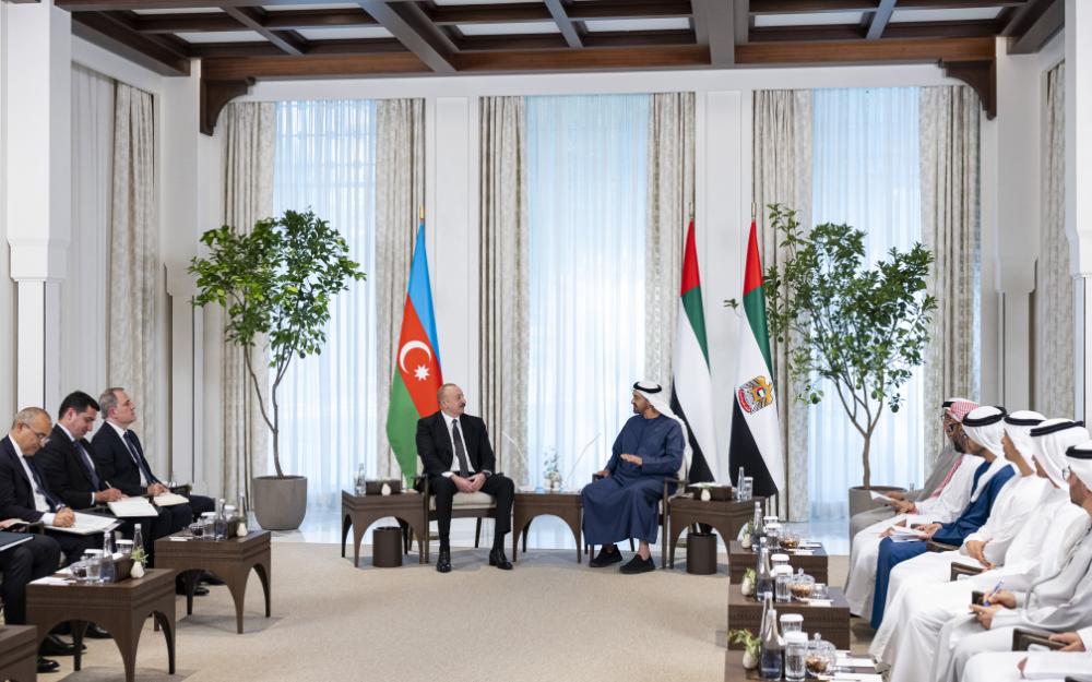 Görüşün sonunda dövlətimizin başçısı Birləşmiş Ərəb Əmirliklərinin Prezidentinə xatirə hədiyyəsi təqdim etdi.