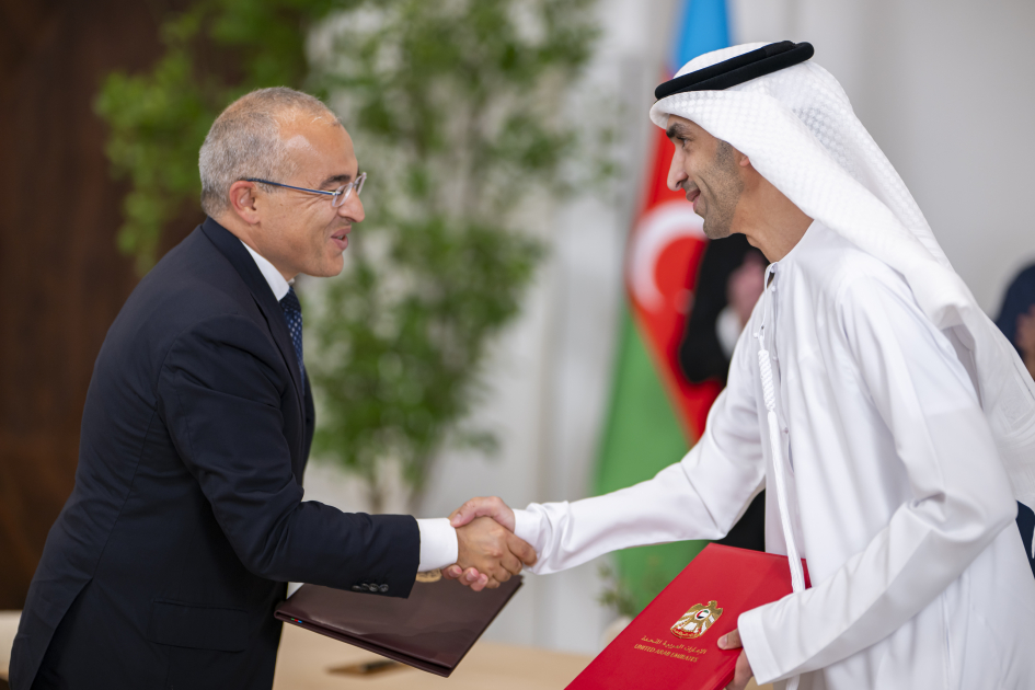 Sonra prezidentlərin iştirakı ilə “Azərbaycan Respublikası Hökuməti ilə Birləşmiş Ərəb Əmirlikləri Hökuməti arasında Hərtərəfli İqtisadi Tərəfdaşlıq Sazişi” imzalandı.
