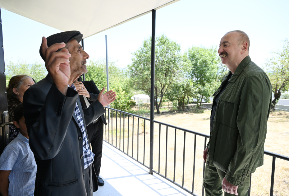 AZƏRTAC xəbər verir ki, dövlətimizin başçısı kəndə köçən sakinlər Rasim Cavadovun və Kərəm Abbasovun evlərində oldu.