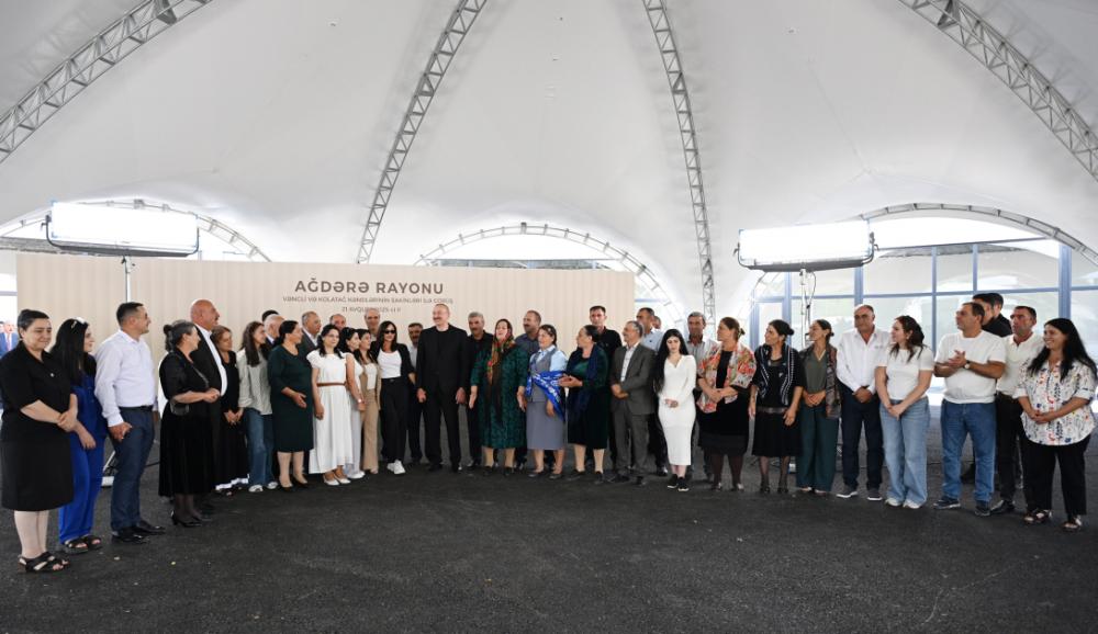 Prezident İlham Əliyev: Burada sizin üçün çox gözəl şərait yaradılıb. Mənzillər hamısı təmirli, şərait, həyətyanı sahələr, su, bütün infrastruktur, hər şey var. Ən önəmlisi də gözəl təbiət və Vətən torpağı. Bu münasibətlə sizi təbrik edirəm.