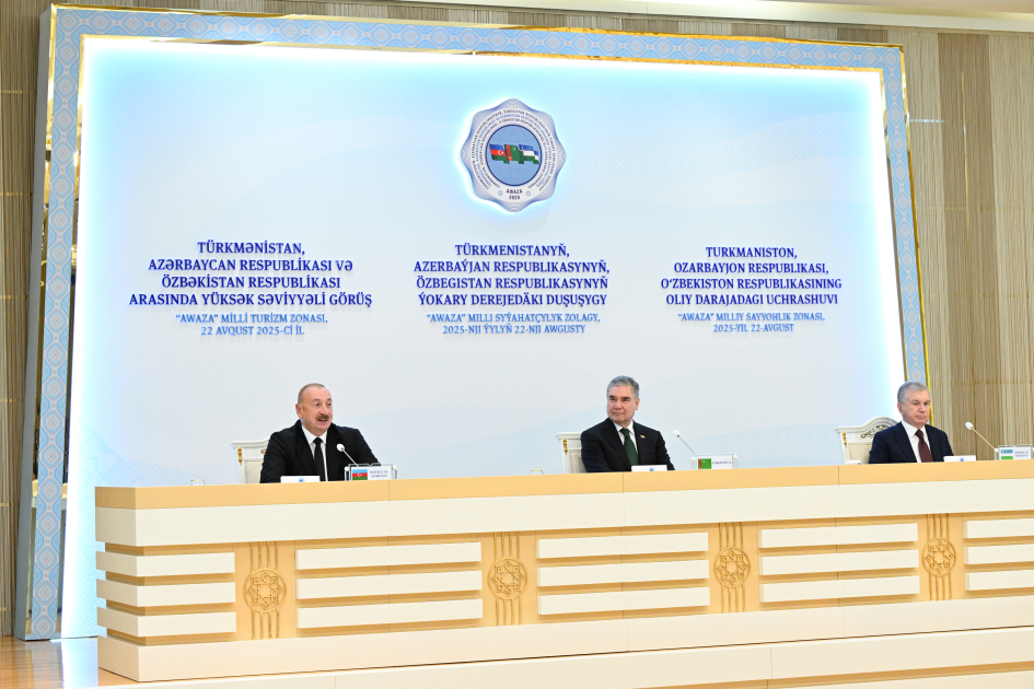Avqustun 22-də Türkmənbaşı şəhərində Azərbaycan Respublikasının Prezidenti İlham Əliyev, Türkmənistan Xalq Məsləhətinin sədri Qurbanqulu Berdiməhəmmədov və Özbəkistan Respublikasının Prezidenti Şavkat Mirziyoyev Türkmənistan, Azərbaycan Respublikası və Özbəkistan Respublikası arasında yüksəksəviyyəli görüşün yekunlarına dair mətbuata birgə bəyanatla çıxış ediblər.