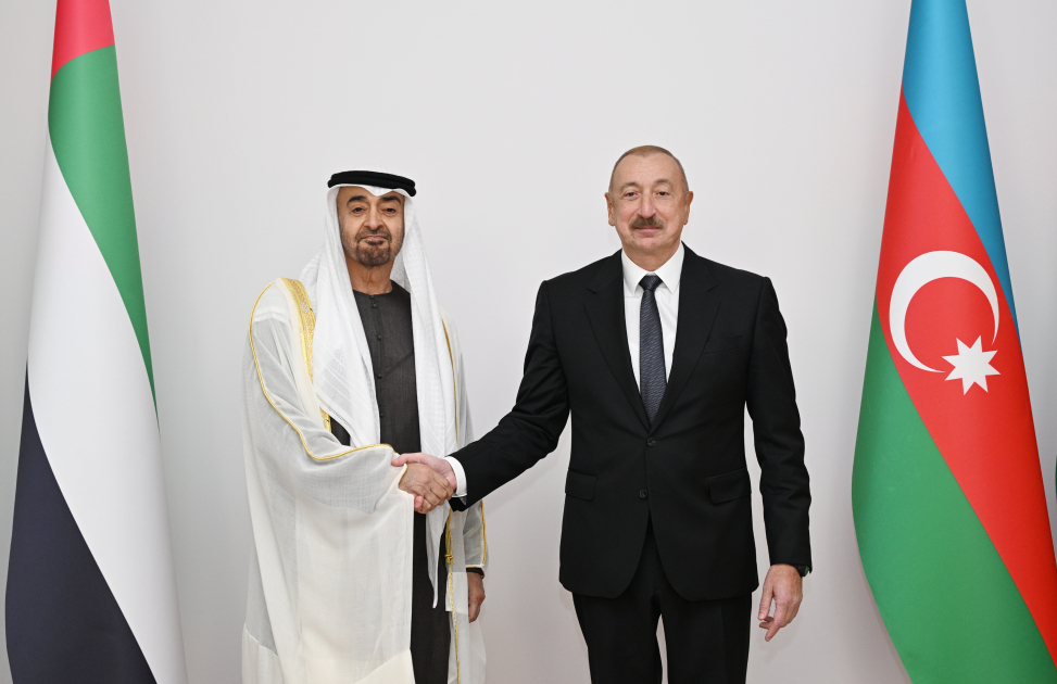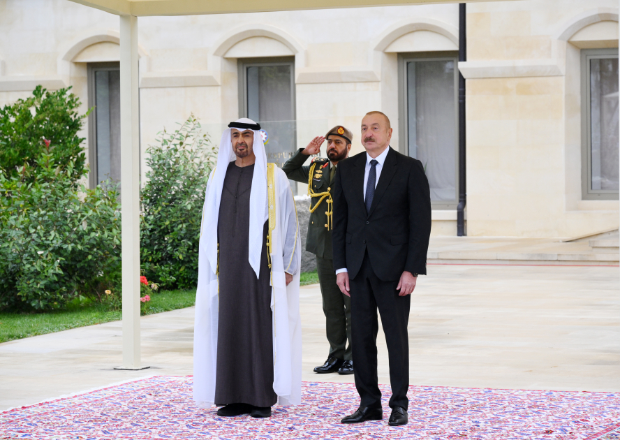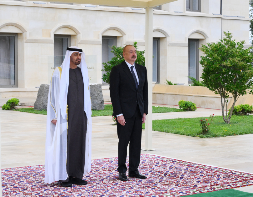 Azərbaycan Respublikasının Prezidenti İlham Əliyev və Birləşmiş Ərəb Əmirliklərinin Prezidenti Şeyx Məhəmməd bin Zayed Al Nəhyan fəxri qarovul dəstəsinin qarşısından keçdilər.