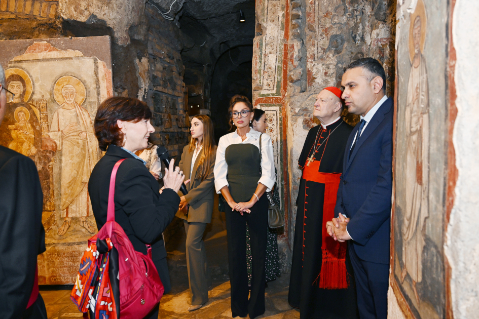 Vatikanın Müqəddəs Arxeologiya üzrə Pontifik Komissiyasının prezidenti Monsenyor Paskuale Yakobone, Mədəniyyət və Müqəddəs Arxeologiya üzrə Pontifik Komissiyasının sabiq prezidenti kardinal Canfranko Ravazi və Roma şəhərinin VIII bələdiyyəsinin prezidenti Amedeo Çakkeri Birinci vitse-prezident Mehriban Əliyevanı qarşıladılar.