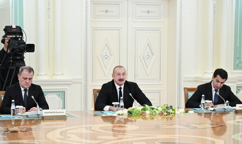 Biz, həmçinin bu gün Orta Dəhliz üzrə keçirilən qısa təqdimat çərçivəsində fikir mübadiləsi apardıq. Bu gün bu istiqamətdə diskussiyaları hələ davam etdirəcəyik. Zəngəzur dəhlizinin yaxın illərdə açılması nəqliyyat və logistika ilə bağlı məsələlərdə ötürücülük qabiliyyətini xeyli artıracaq.
