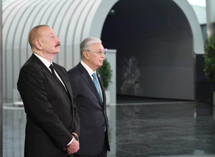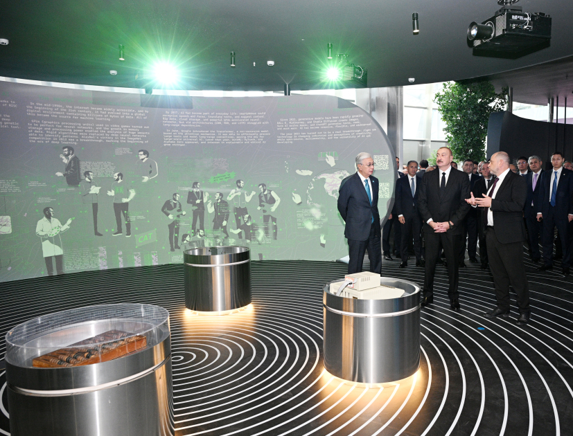 Oktyabrın 21-də Azərbaycan Respublikasının Prezidenti İlham Əliyev və Qazaxıstan Respublikasının Prezidenti Kasım-Jomart Tokayev Astanada “Alem.ai” Beynəlxalq Süni İntellekt Mərkəzində olublar.