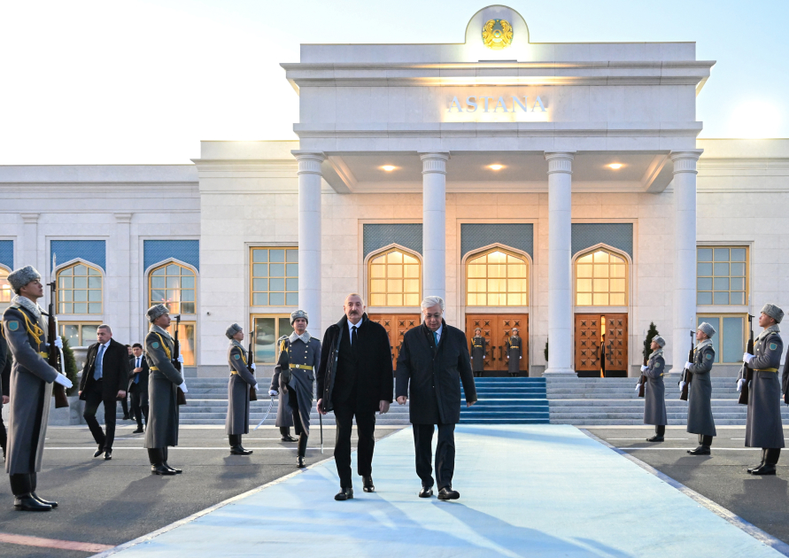 AZƏRTAC xəbər verir ki, Astana şəhərinin Beynəlxalq Aeroportunda Azərbaycan Prezidentinin şərəfinə fəxri qarovul dəstəsi düzülmüşdü.
