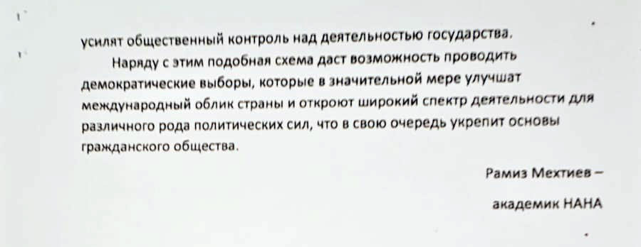 Eyni zamanda bu model demokratik seçkilərin keçirilməsinə imkan yaradacaq ki, bu da ölkənin beynəlxalq imicini əhəmiyyətli dərəcədə yaxşılaşdıracaq, müxtəlif siyasi qüvvələrin fəaliyyət spektrini genişləndirəcək və nəticə etibarilə vətəndaş cəmiyyətinin əsaslarını möhkəmləndirəcək.