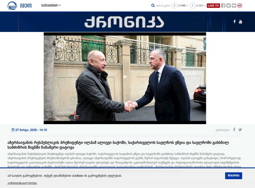 / / Prezident İlham Əliyevin Gürcüstanın ölkəmizdəki səfirliyinə gedib başsağlığı verməsi qonşu ölkənin KİV-lərinin diqqət mərkəzində olub