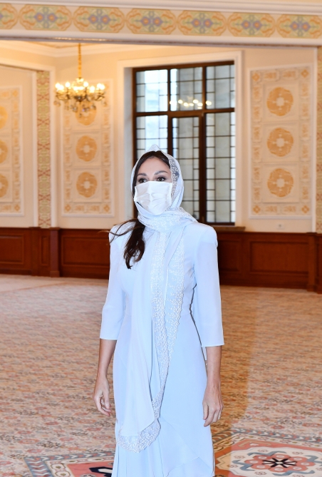 Президент Азербайджанской Республики Ильхам Алиев и первая леди Мехрибан Алиева ознакомились с условиями, созданными в новом здании мечети «Ханым Фатимеи Захра» в поселке Ени Гюнешли Сураханского района Баку.
